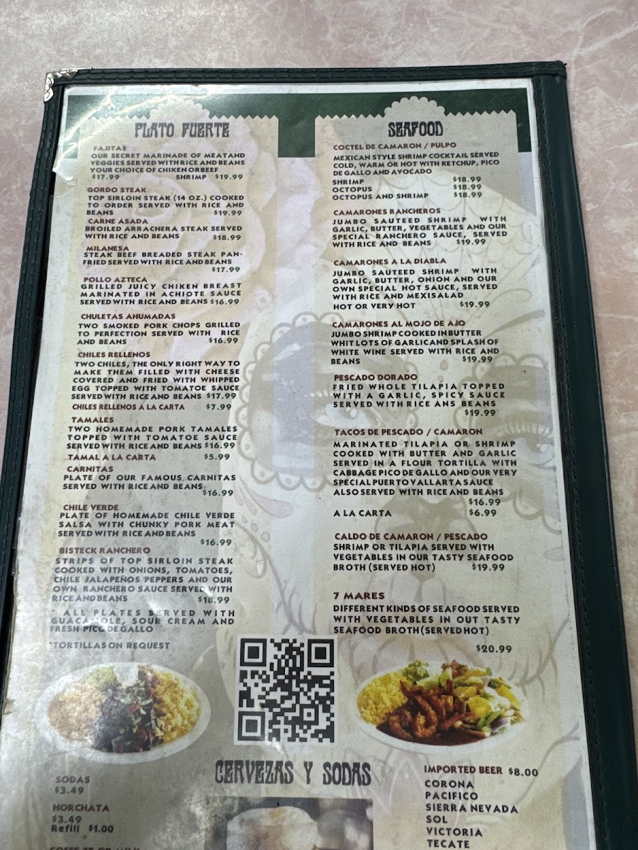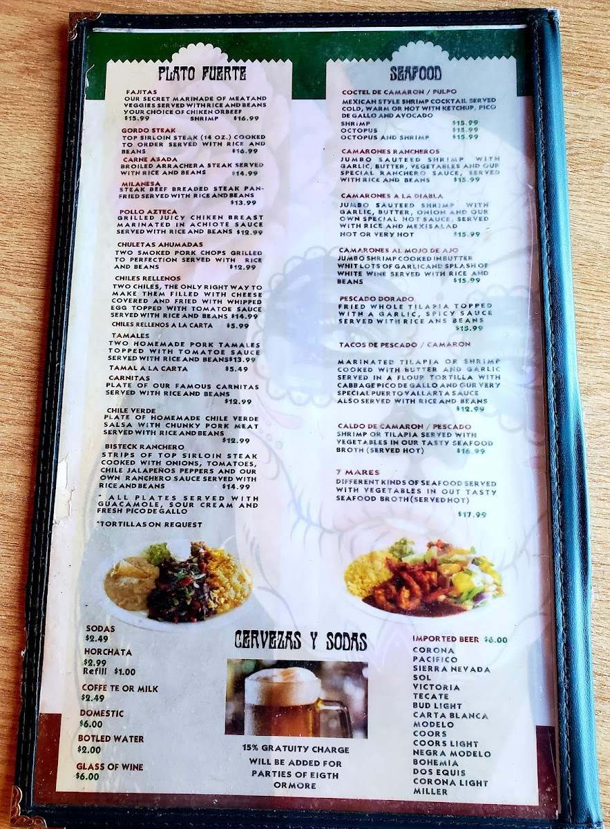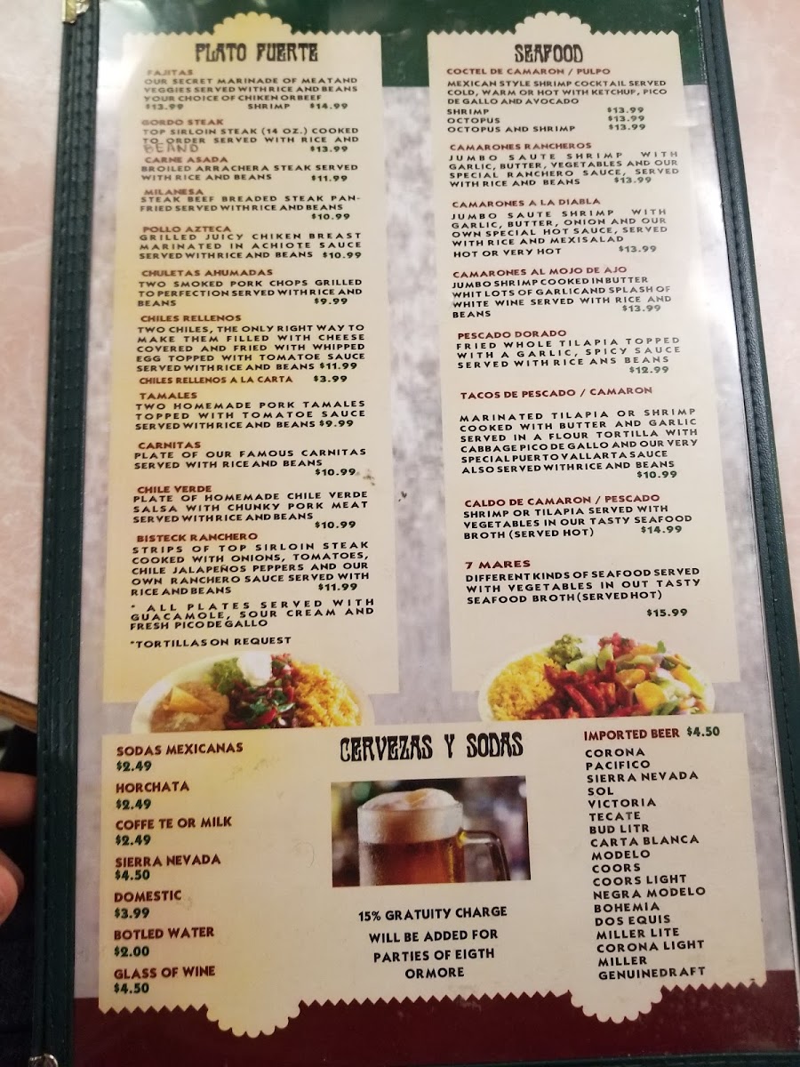 - Specialty Plates: Items like Bisteck Ranchero, Huevos Rancheros, Chilaquiles with Carne Asada, Pozole, Camarones Rancheros, Chimichanga, and other regional specialties.